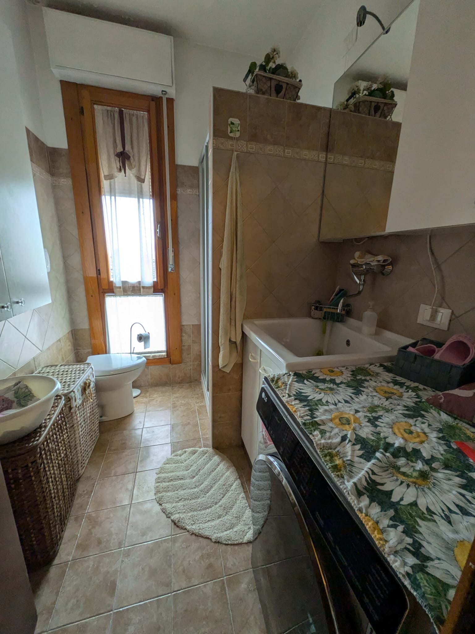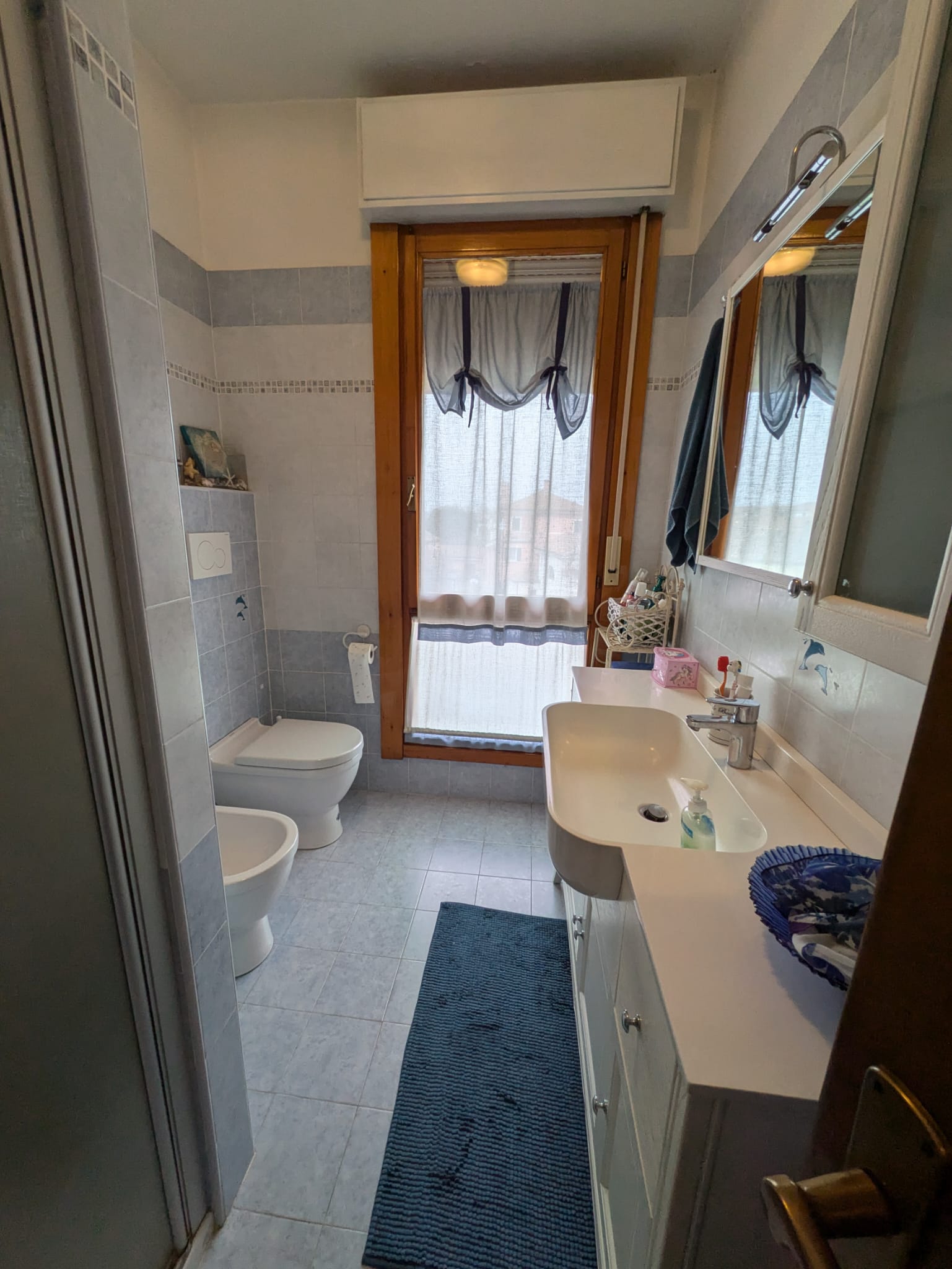 L’abitazione è composta da ingresso, cucina abitabile con accesso a un terrazzo, ampio soggiorno con terrazzino, tre camere di cui una singola, una doppia e una molto spaziosa, due bagni e ripostiglio.
