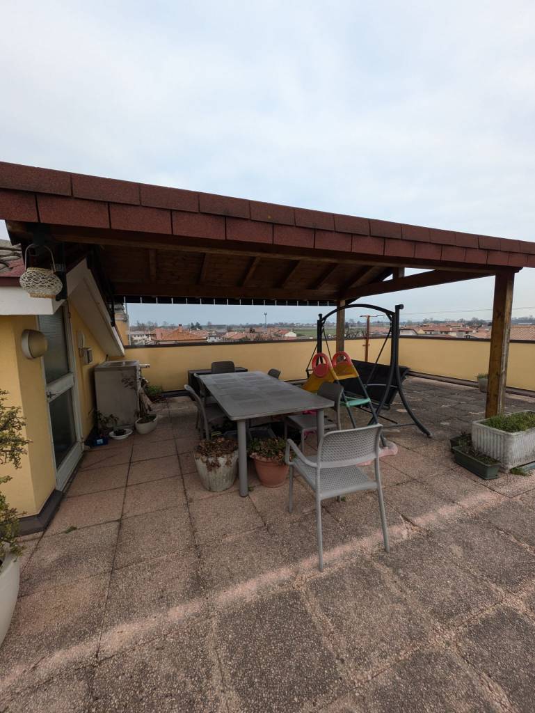 Terrazzo panoramico di 60 mq, situato sopra l’appartamento, dotato di lavabo e citofono, che permette di rispondere e aprire il portone comodamente, senza dover scendere.