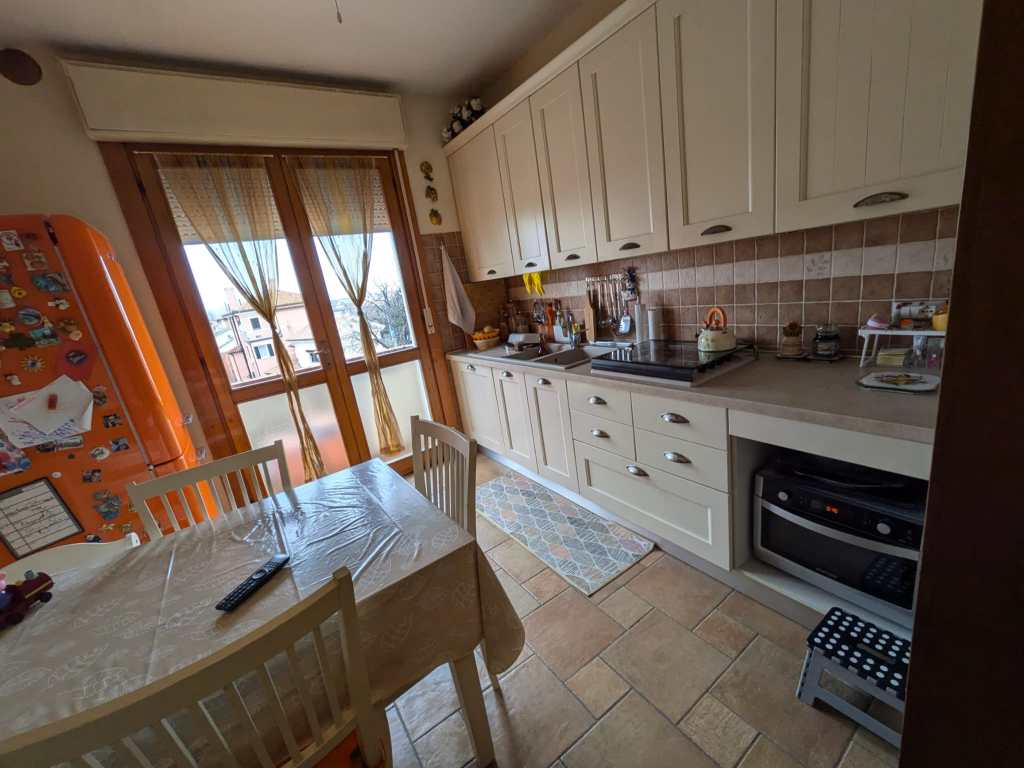 L’abitazione è composta da ingresso, cucina abitabile con accesso a un terrazzo, ampio soggiorno con terrazzino, tre camere di cui una singola, una doppia e una molto spaziosa, due bagni e ripostiglio.