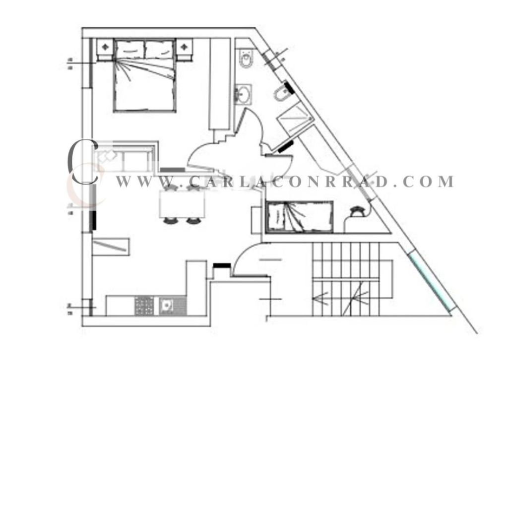 L’ immobile è composto da ingresso su zona giorno dove troviamo il salotto con angolo cottura open space.