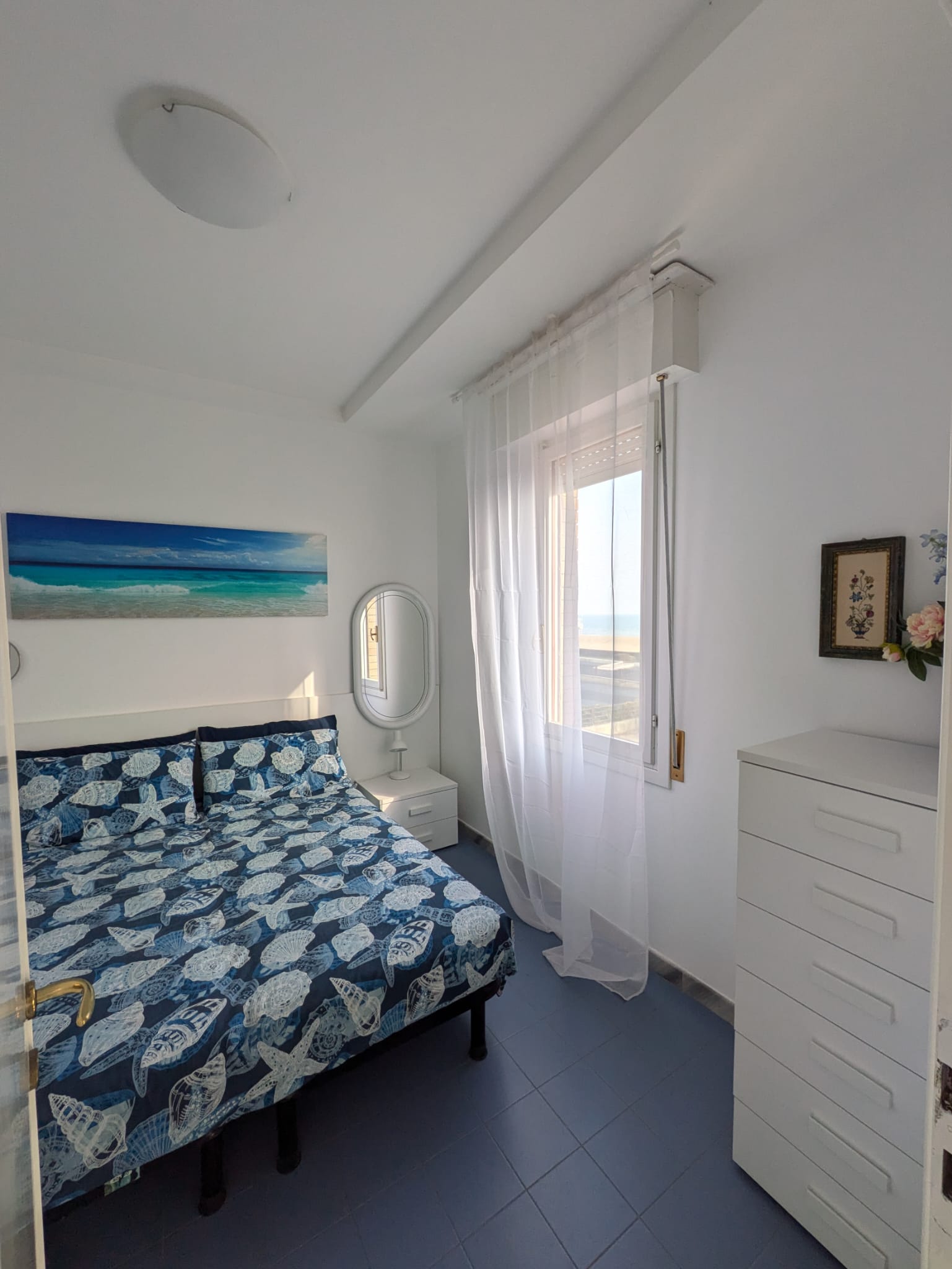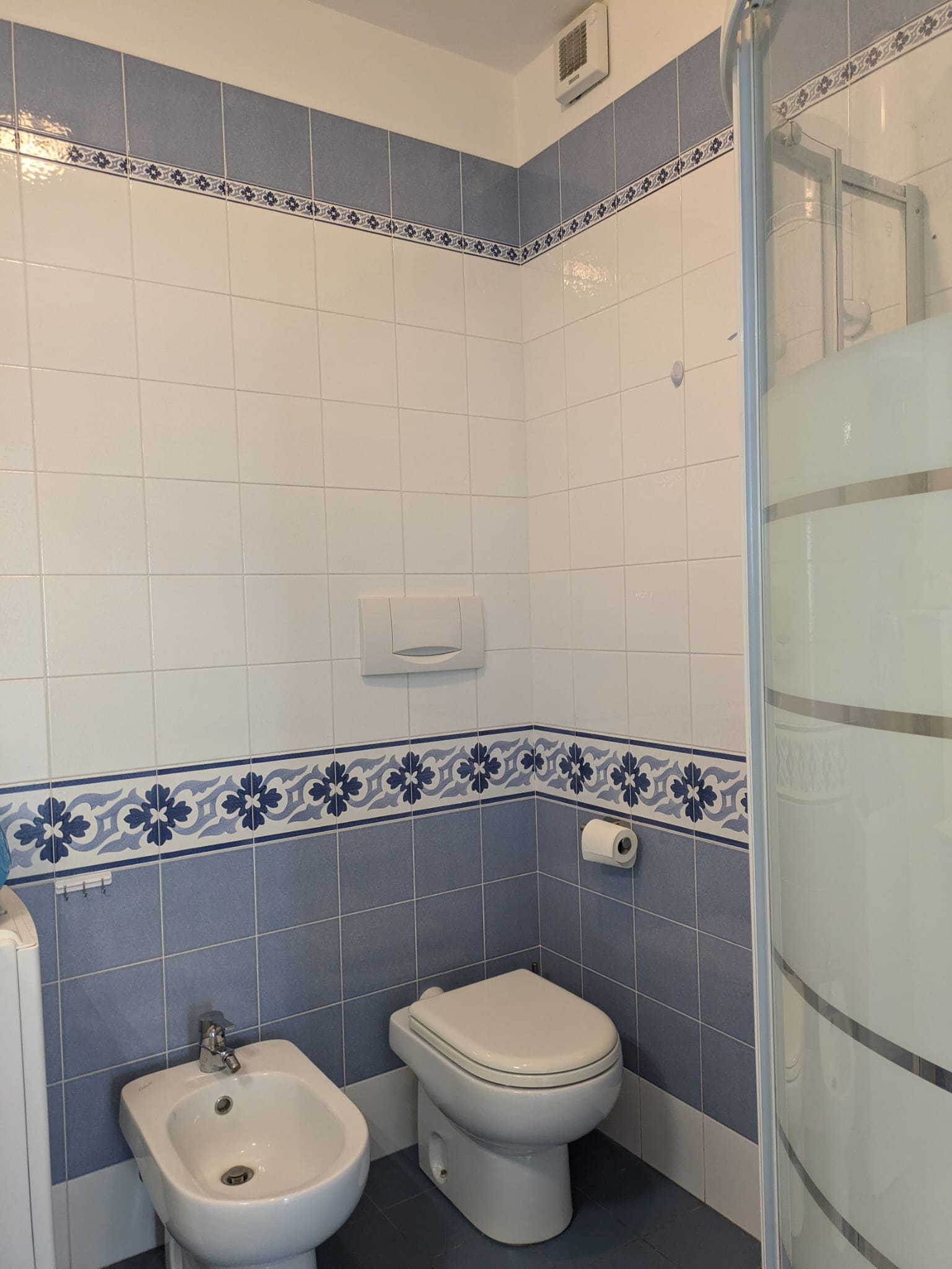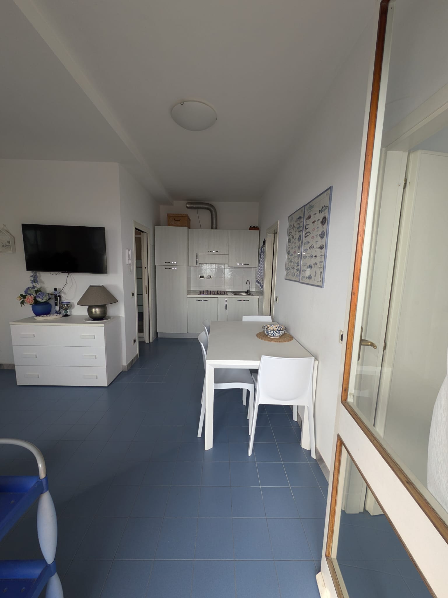 L’appartamento, situato al primo piano con ascensore, offre una splendida vista mare e si compone di un luminoso soggiorno-cucina open space con accesso a un terrazzo abitabile vista mare, una camera matrimoniale, una cameretta con ulteriore terrazzino e un bagno con doccia. Nel corso degli anni sono stati fatti lavori di manutenzione e, più recentemente, sono stati installati un boiler e un climatizzatore nuovi.