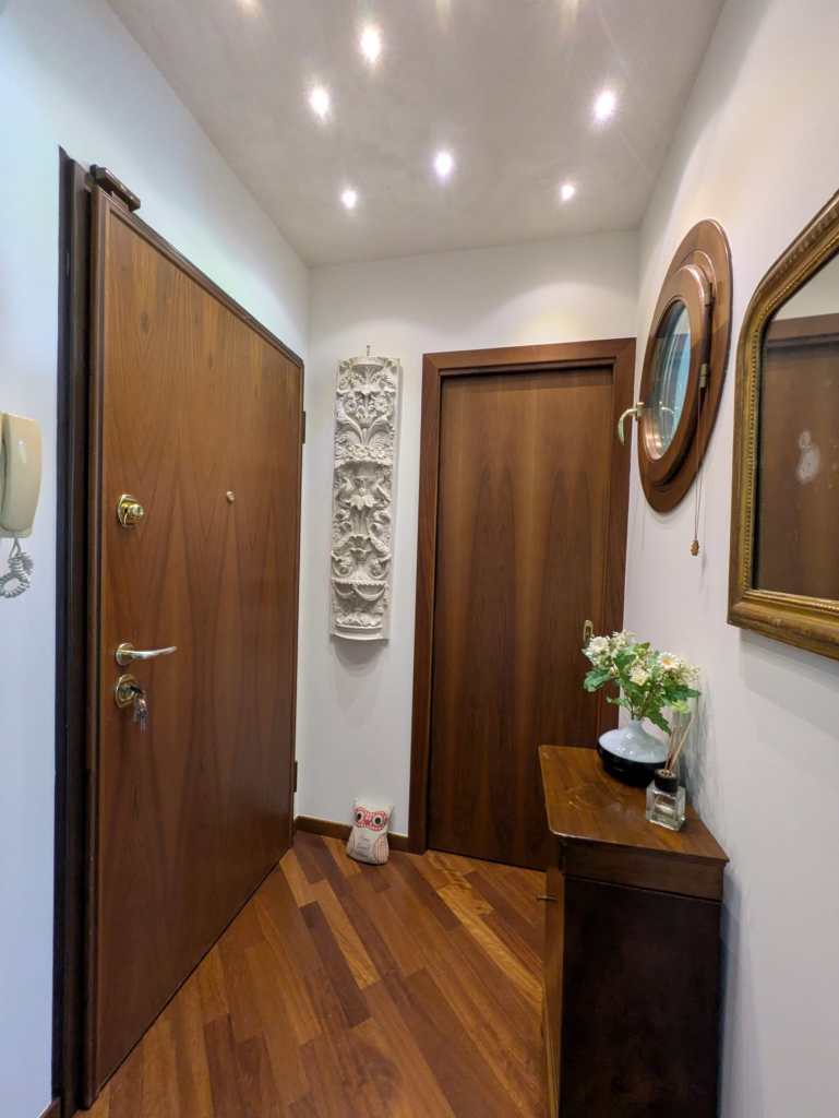 L’appartamento si apre su un ingresso che conduce a un ampio soggiorno con terrazzo a mezzaluna, cucina separata, camera matrimoniale, bagno finestrato, pratico ripostiglio, lavanderia e un ulteriore terrazzo abitabile.