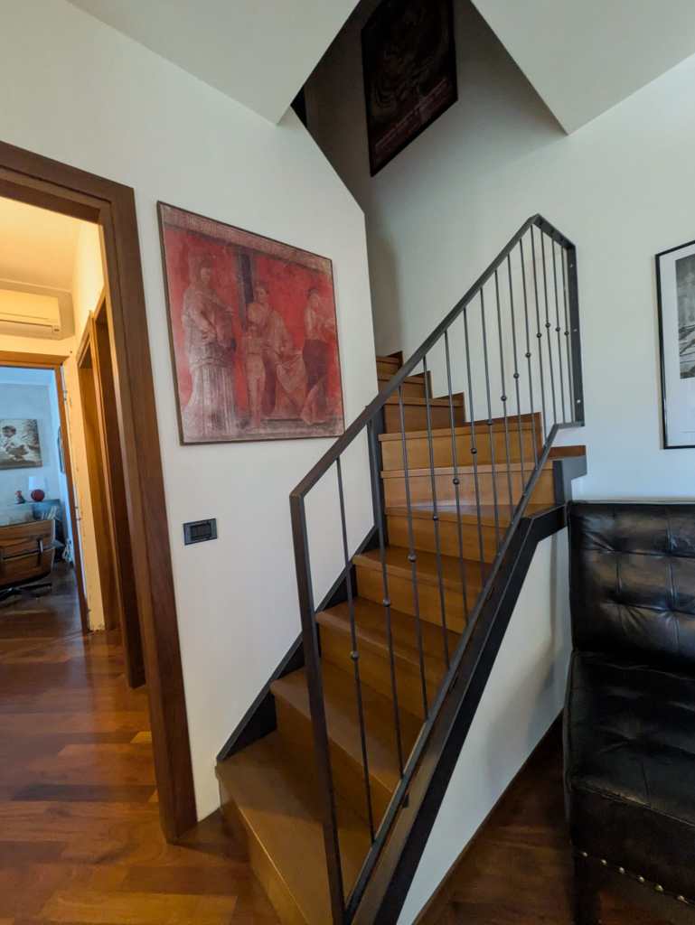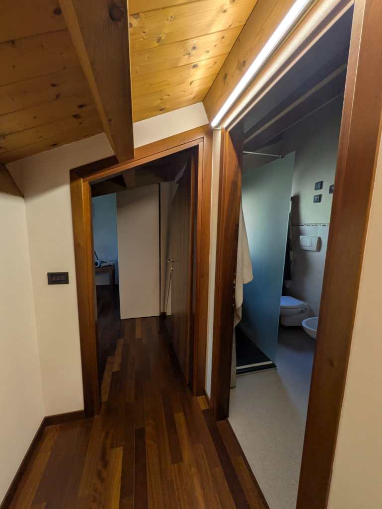 Una scala interna conduce al piano superiore, dove si trovano un secondo bagno, due locali mansardati attualmente adibiti a camere e un comodo sottotetto.