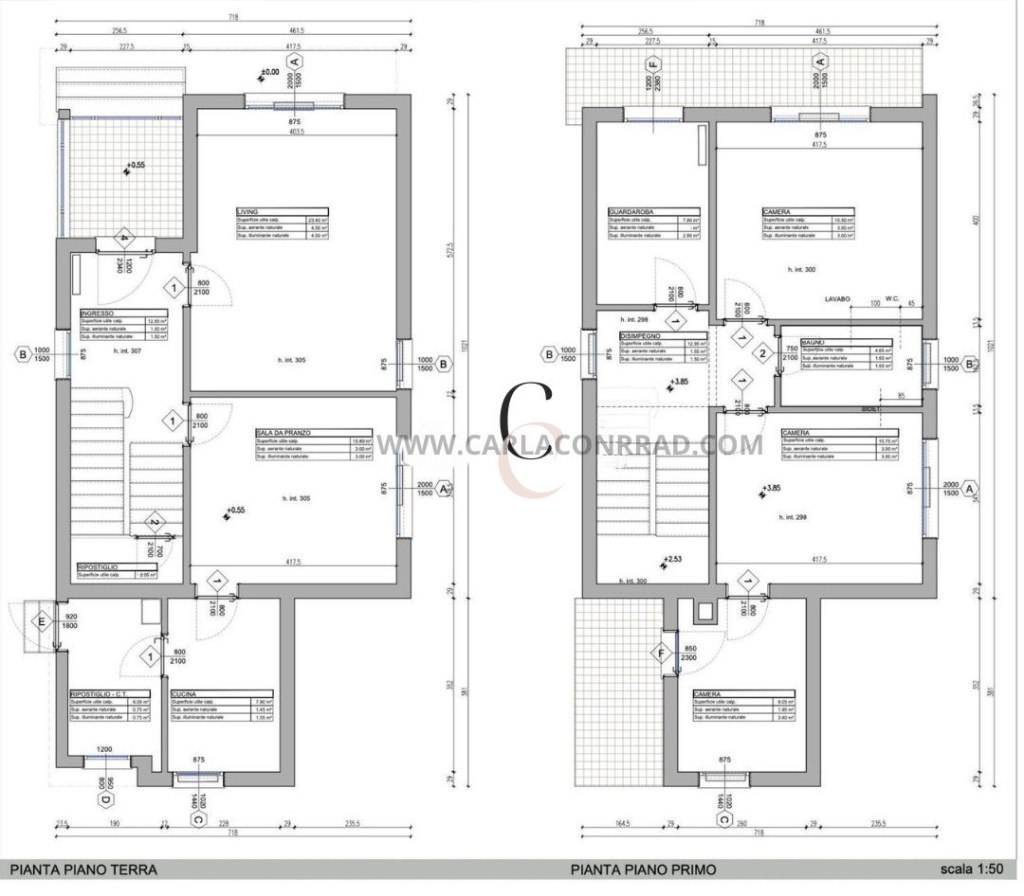 Al piano terra, accogliente ingresso con accesso al luminoso soggiorno, cucina moderna e funzionale, oltre a due comodi ripostigli. Al primo piano, un elegante disimpegno conduce a due spaziose camere matrimoniali, di cui una con accesso al terrazzo, e una terza camera singola con terrazzo collegata a una delle camere matrimoniali. Il piano superiore offre anche un pratico guardaroba e un bagno.