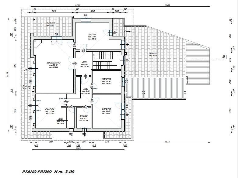 Include una cucina con terrazzino, un soggiorno luminoso con terrazzo a L (comunicante con una delle camere), tre camere da letto, un bagno e un ulteriore terrazzo che si collega a un’altra delle camere. Terrazza di 46 mq.