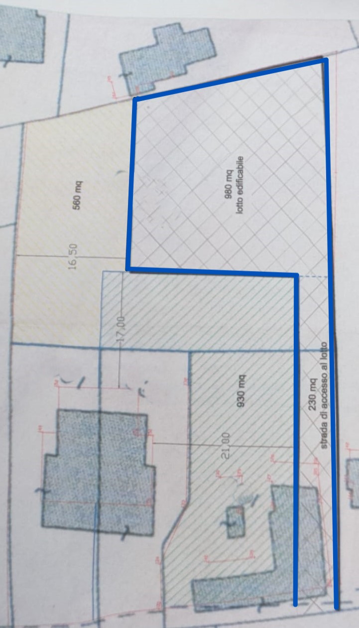 Terreno edificabile di circa 1.200 m² situato in zona residenziale urbanizzata, con accesso diretto da strada residenziale e comoda possibilità di allaccio alle principali utenze (acqua, luce, gas e fognatura). Il lotto dispone di una volumetria edificabile di 950 m³, derivante da un rustico di tre piani attualmente presente sul terreno e da demolire, con possibilità di trasferire la cubatura in un nuovo progetto. Ideale per la realizzazione di una villa singola o di una soluzione bifamiliare in contesto tranquillo e ben servito. Ottima opportunità per chi desidera costruire un’abitazione personalizzata in una zona già urbanizzata e facilmente accessibile.