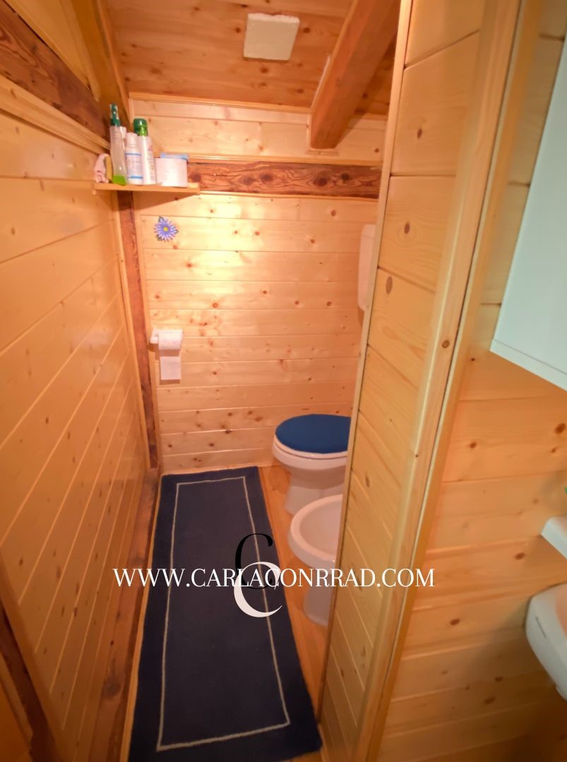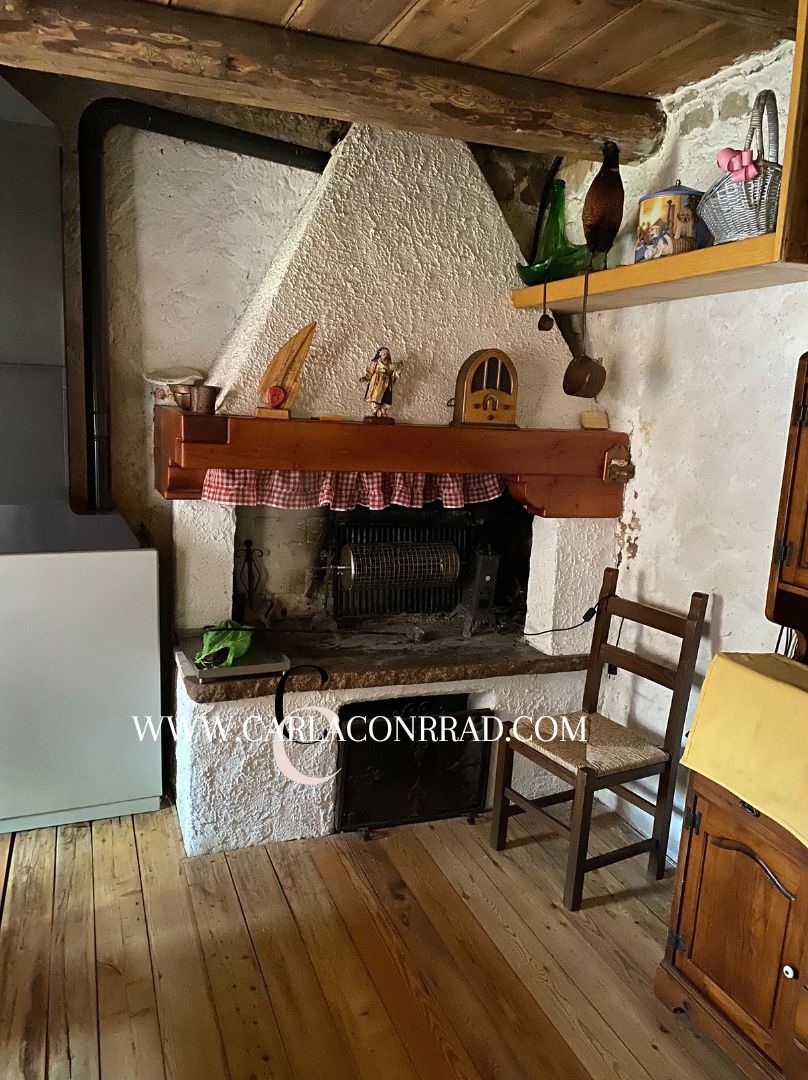 La casa si compone come segue: al piano terra si trova una taverna con caminetto utilizzabile per riscaldare l’ambiente o per cucinare alla brace, oltre a un bagno. Al primo piano, un’ampia entrata con un soggiorno dotato di camino e sistema di riscaldamento a aria calda che si estende anche al piano superiore, un divano letto, una cucina, un ripostiglio e una lavanderia con servizio wc. Al secondo piano, un corridoio centrale con abbaino apribile sul tetto, tre camere, un ripostiglio e un bagno completo di doccia. Il riscaldamento è garantito da caminetti a legna e una stufa/caldaia con serbatoio a gasolio incorporato, che riscalda la taverna e il piano superiore. A completare la proprietà, un parco di circa 2000/2500 metri quadrati.