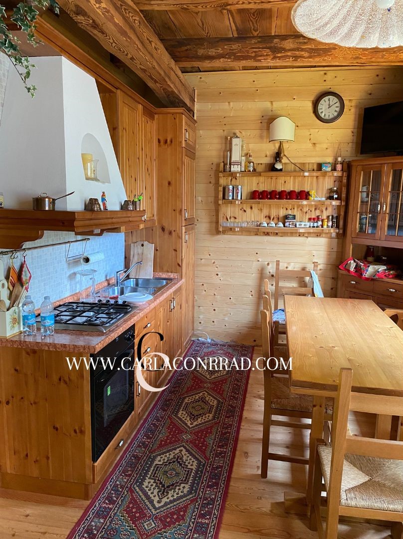 Caratteristico tabià singolo completamente ristrutturato e arredato, situato in posizione dominante ad un’altitudine di 1000 metri, con vista mozzafiato, ben servito dai negozi e comodo alle piste da sci.