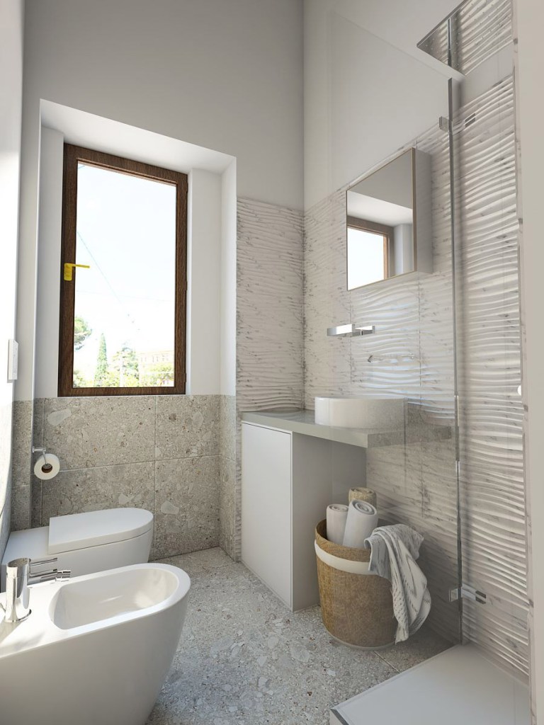 Appartamento moderno, recentemente ristrutturato, situato al primo piano di una palazzina di tre piani. L’immobile è composto da ingresso, cucina e salotto open space, una camera singola, una camera doppia, bagno finestrato e bagno/lavanderia. Completa la proprietà un garage al piano terra e un giardino condominiale.