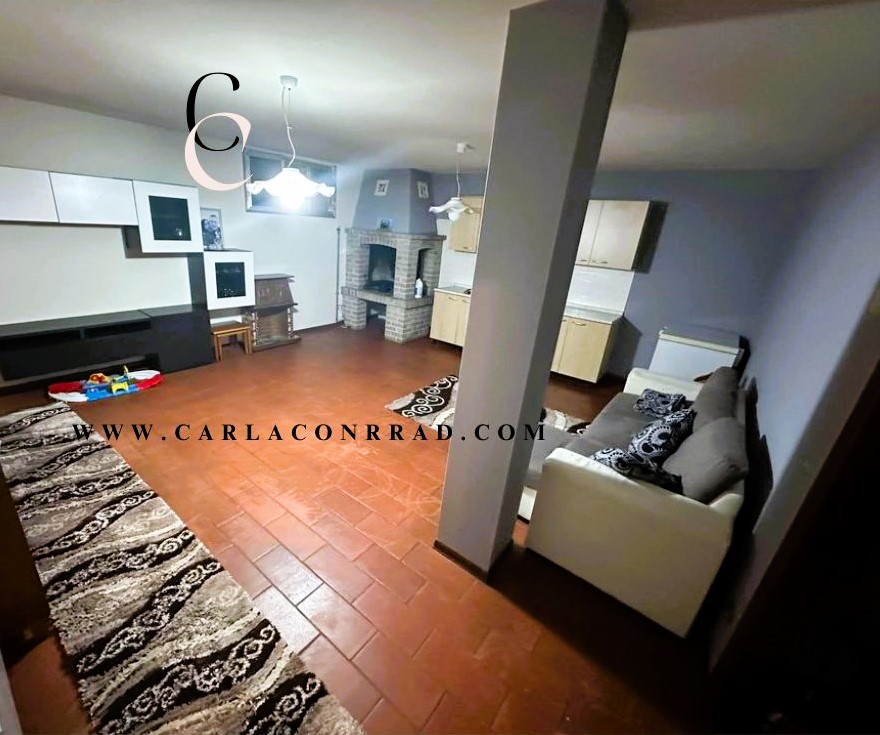 Il piano terra accoglie una cucina abitabile e un ampio soggiorno illuminato da luminose finestre che si affacciano sul giardino creando un ambiente invitante per la socializzazione e il relax. Dal soggiorno, si può accedere direttamente al giardino, creando una piacevole connessione tra gli spazi interni ed esterni. Un pratico ripostiglio è disponibile per riporre oggetti di uso quotidiano, mentre un bagno aggiunge comodità al piano terra.